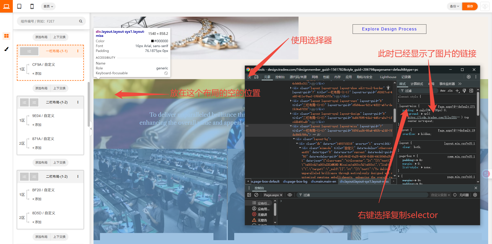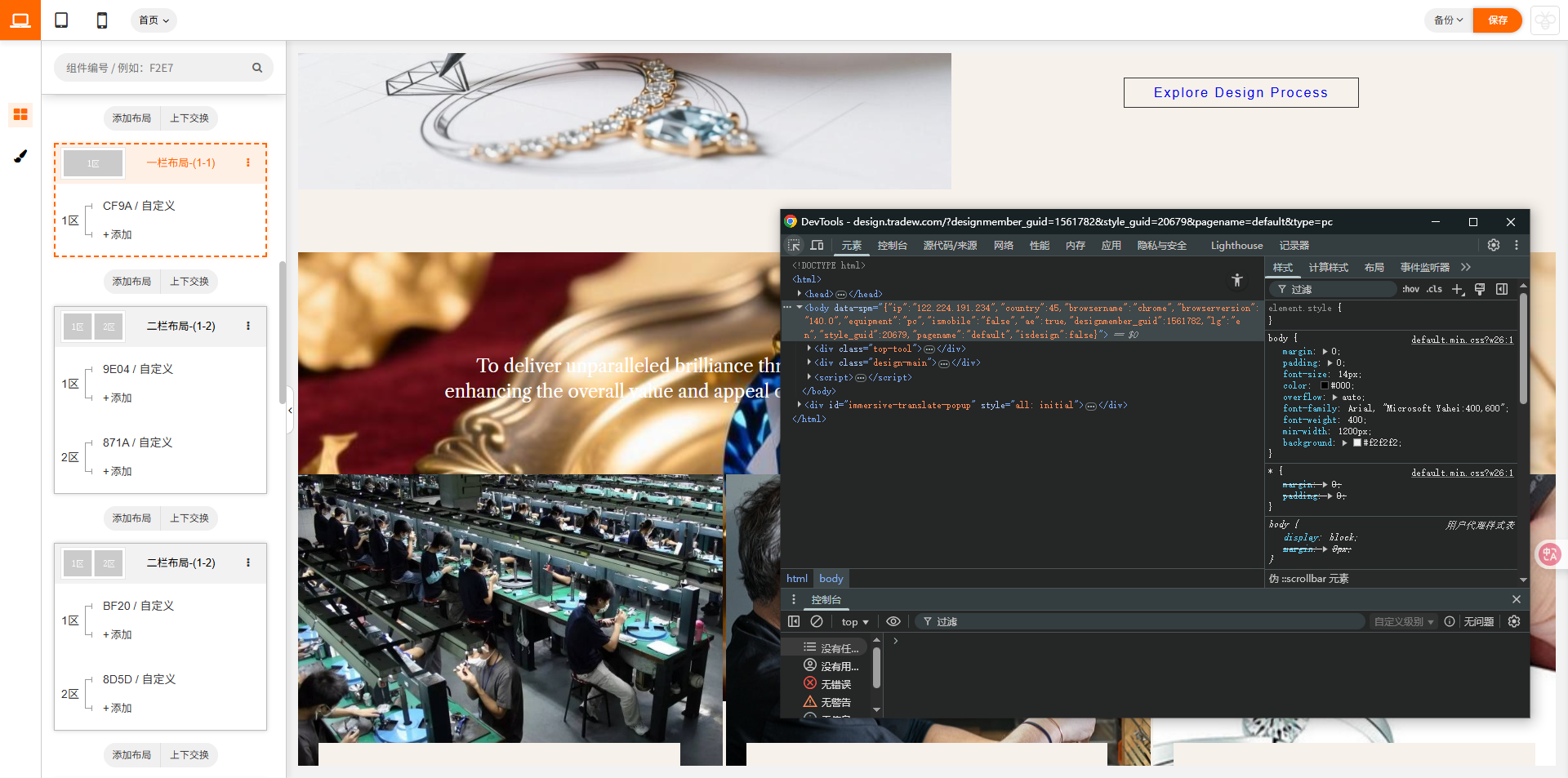 首先进入装修后台,点击键盘的F12按键进入开发者功能,如图: