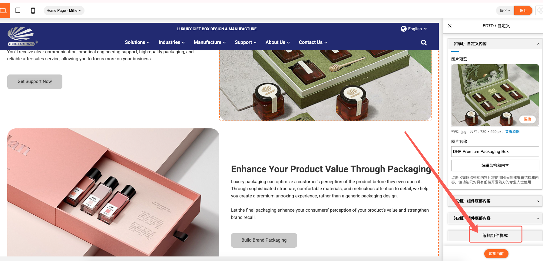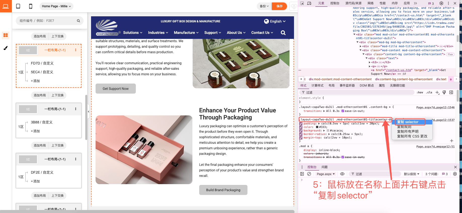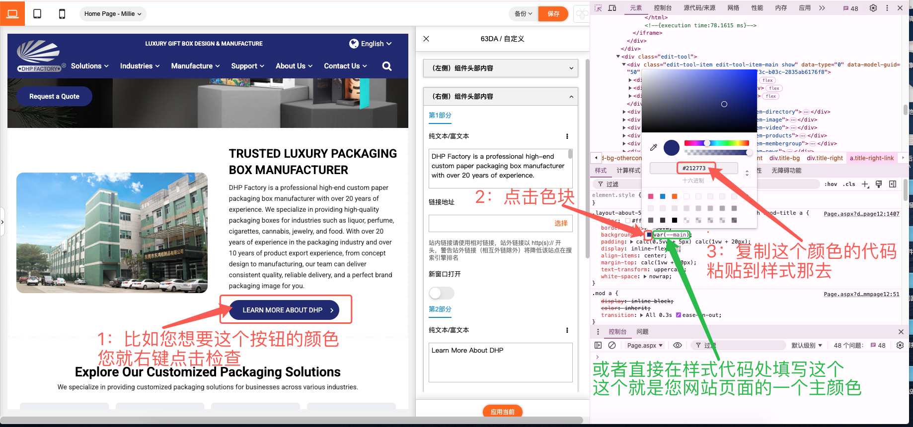 在这里我们就可以对鼠标悬浮在按钮上方时字体和背景的颜色进行修改,把第一步复制的颜色代码替换进去就可以了